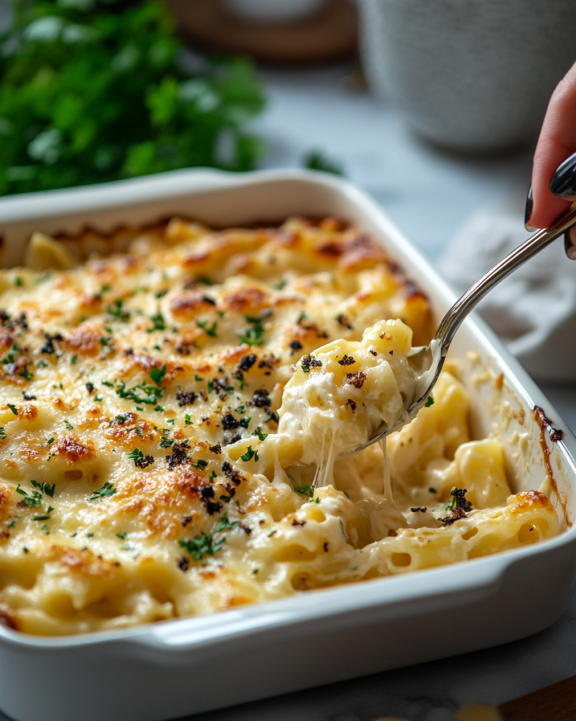 This dish is inspired by classic baked pasta traditions found in many home kitchens around the world. It’s the kind of meal that often appears at Sunday dinners or special occasions, where the oven does most of the work while the kitchen fills with irresistible aromas. Whether you’re cooking for loved ones or simply treating yourself, this cheesy pasta bake is the definition of comfort food done right.