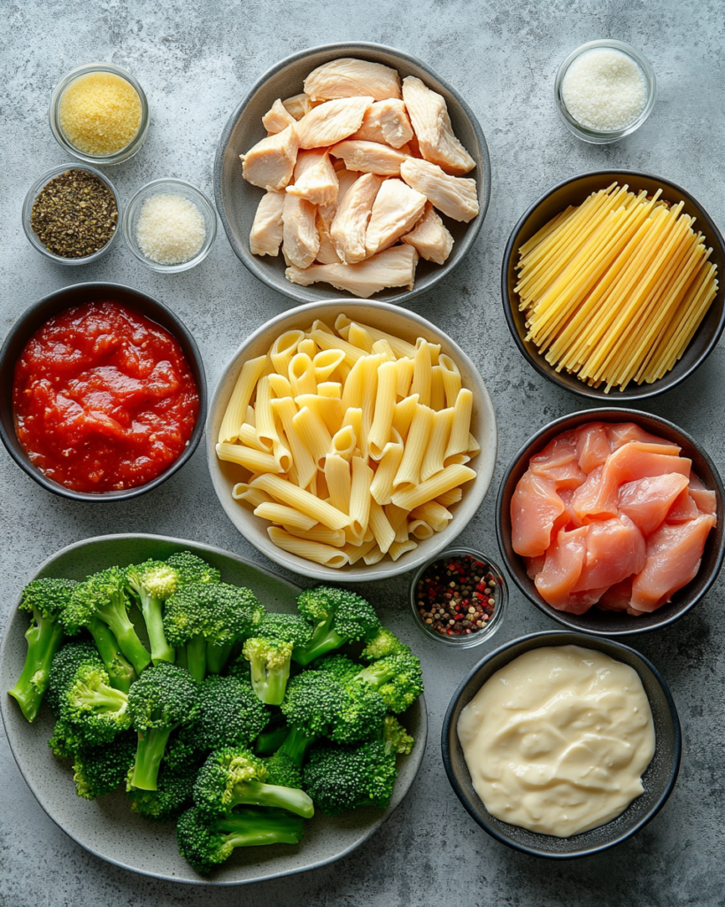 The foundation of hicken Broccoli Alfredo Pasta relies on a few essential ingredients that work together to create a balanced dish. Pasta serves as the base, typically fettuccine or penne, chosen for its ability to hold creamy sauce. Broccoli brings a fresh, slightly earthy tone and adds texture contrast to the soft pasta.