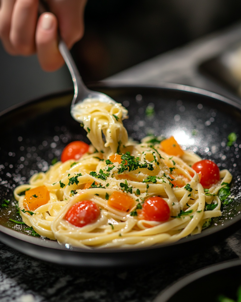 If you prefer a thicker Alfredo sauce, allow it to simmer a little longer before adding the pasta. Stirring in extra Parmesan cheese also helps increase thickness naturally. Another method is reducing the cream slightly before mixing in the cheese. If the sauce becomes too thick, reserved pasta water can be added gradually to adjust the consistency without losing flavor or texture.