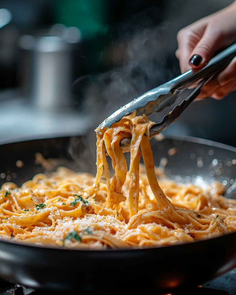 For a lighter version, half-and-half can replace heavy cream, though the sauce will be slightly less rich. Adding a small amount of pasta water helps maintain a silky consistency even with substitutions.