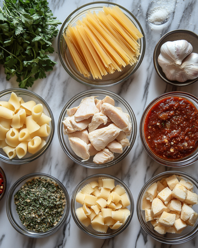 This dish is popular for weeknight cooking because everything cooks in one pot, reducing cleanup while still delivering deep flavor. The chicken browns lightly before simmering with pasta in a creamy base, allowing the starch from the pasta to naturally thicken the sauce as it cooks.