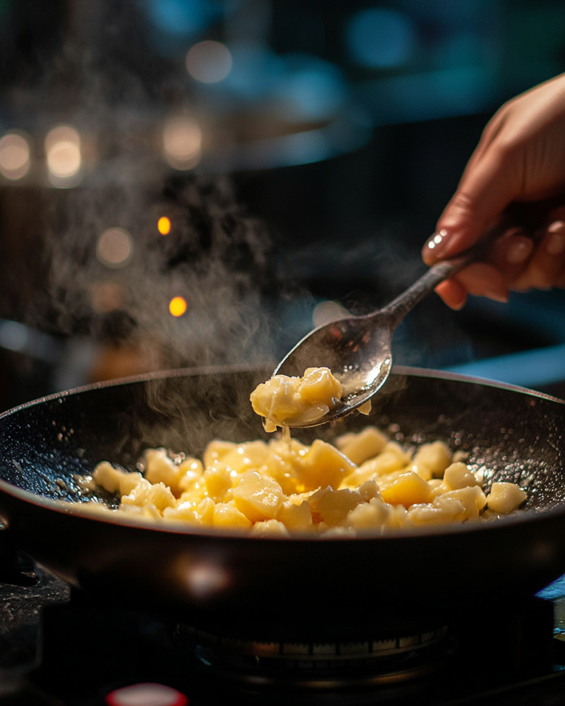 This preparation works well for quick dinner service or batch preparation, offering consistent texture when heat levels remain steady and ingredients are incorporated in stages.