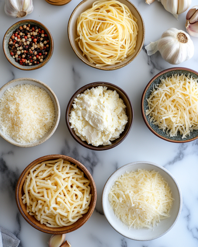 The core of this dish rests on a few simple ingredients that bring structure, creaminess, and savory depth. Chicken breast serves as the main protein, offering a lean base that absorbs the flavors of garlic and cheese while staying tender when cooked properly.
