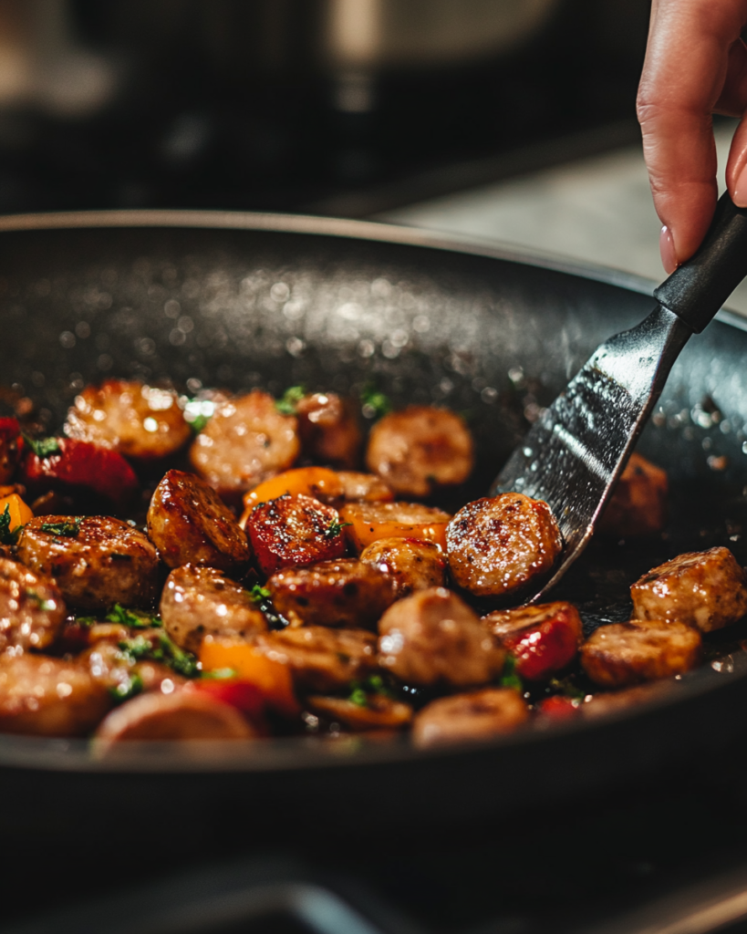 Different sausage styles can shift flavor direction. Spicy sausage brings heat, while mild sausage creates a softer profile. Chicken sausage works for a lighter result without changing preparation steps.
