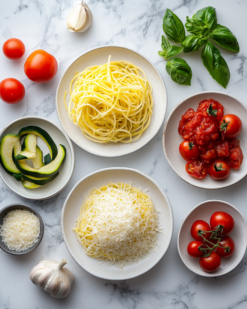 Inspired by modern Mediterranean cooking, this recipe highlights simple ingredients that let natural flavors shine. Zucchini has become a popular alternative to traditional pasta, offering a lighter texture while still soaking up sauces beautifully. Paired with a savory tomato-based sauce, garlic, and herbs, it transforms into a meal that feels both comforting and refreshing. It’s the kind of dish you can enjoy any day of the week without guilt or heaviness.